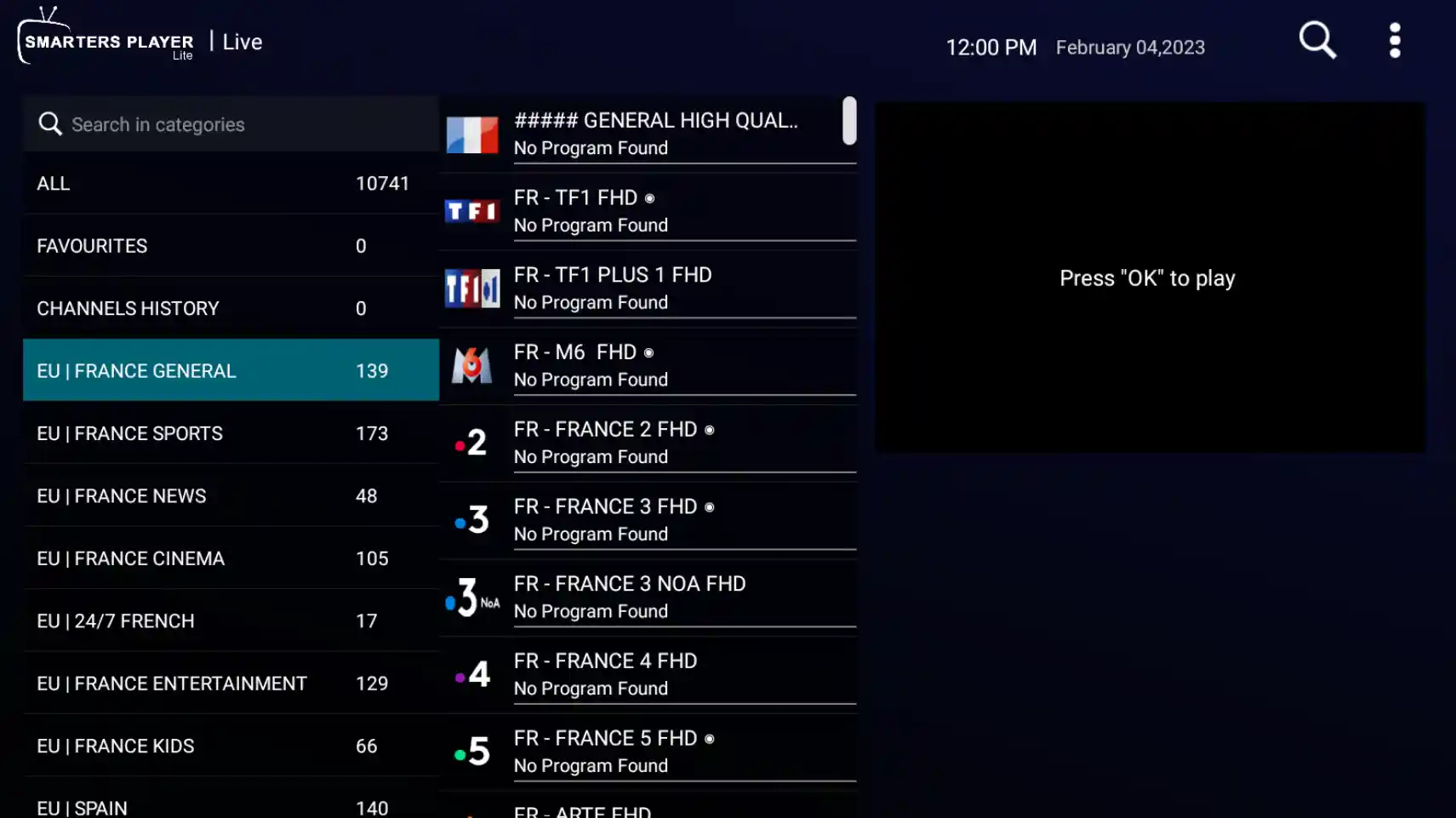 • Chaines disponibles: France , Belgique, Suisse, Espagne, Portugal, Italie, Allemagne, Pays Bas, Roumanie, Albanie, Russie Arabe, UK , Latino, Tuquie, USA, Canada, Afrique, Inde, Pakistan